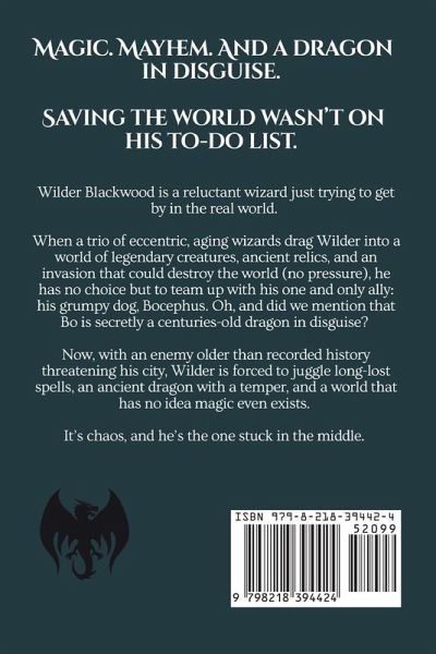 Wilder Blackwood is a reluctant wizard just trying to get by in the real world. When a trio of eccentric, aging wizards drag Wilder into a world of legendary creatures, ancient relics, and an invasion that could destroy the world (no pressure), he has no choice but to team up with his one and only ally: his grumpy dog, Bocephus. Oh, and did we mention that Bo is secretly a centuries-old dragon in disguise? Now, with an enemy older than recorded history threatening his city, Wilder's forced to juggle long-lost spells, an ancient dragon with a temper, and a world that has no idea magic even exists. It's chaos, and he's the one stuck in the middle. Magic. Mayhem. And one very reluctant wizard. If The Dresden Files and How to Train Your Dragon had a love child, it would be Treasure of the American Dragon-a fast-paced, snarky, and magical adventure that proves even the most unwilling hero can save the world... eventually.
