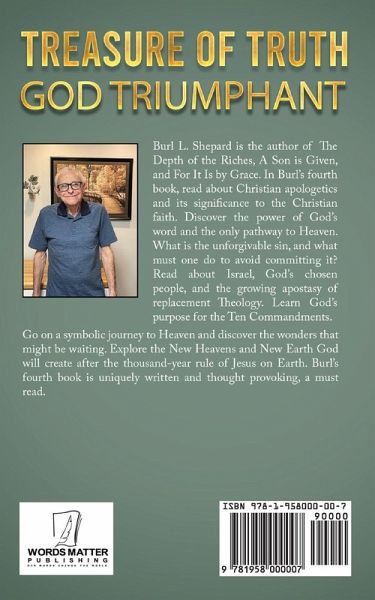 Burl L. Shepard is the author of The Depth of the Riches, A Son is Given, and For It Is by Grace. In Burl's fourth book, read about Christian apologetics and its significance to the Christian faith. Discover the power of God's word and the only pathway to Heaven. What is the unforgivable sin, and what must one do to avoid committing it? Read about Israel, God's chosen people, and the growing apostasy of Replacement Theology. Learn God's purpose for the Ten Commandments. Go on a symbolic journey to Heaven and discover the wonders that might be waiting. Explore the New Heavens, and New Earth God will create after the thousand-year rule of Jesus on Earth. Burl's fourth book is uniquely written and thought-provoking, a must-read.