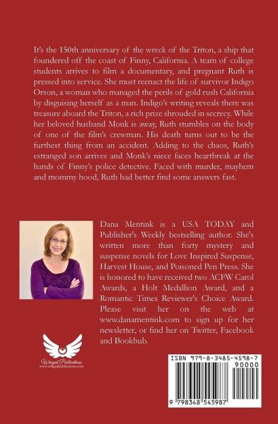 It's the 150th anniversary of the wreck of the Triton, a ship that foundered off the coast of Finny, California. A team of college students arrives to film a documentary, and pregnant Ruth is pressed into service. She must reenact the life of survivor Indigo Orson, a woman who managed the perils of gold rush California by disguising herself as a man. Indigo's writing reveals there was treasure aboard the Triton, a rich prize shrouded in secrecy. While her beloved husband Monk is away, Ruth stumbles on the body of one of the film's crewman. His death turns out to be the furthest thing from an accident. Adding to the chaos, Ruth's estranged son arrives and Monk's niece faces heartbreak at the hands of Finny's police detective. Faced with murder, mayhem and mommy hood, Ruth had better find some answers fast.