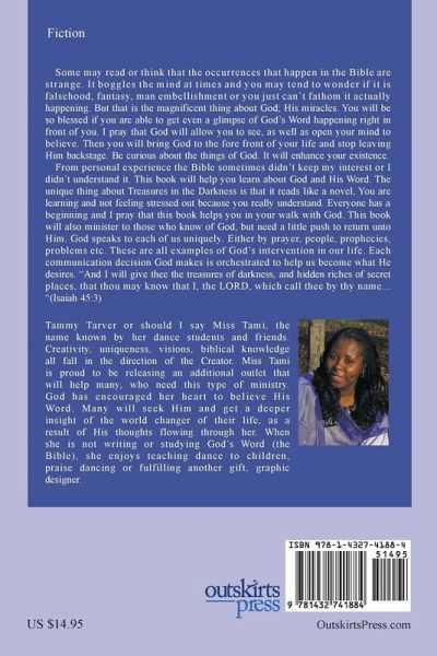 Some may read or think that the occurrences that happen in the Bible are strange. It boggles the mind at times and you may tend to wonder if it is falsehood, fantasy, man embellishment or you just can't fathom it actually happening. But that is the magnificent thing about God; His miracles. You will be so blessed if you are able to get even a glimpse of God's Word happening right in front of you. I pray that God will allow you to see, as well as open your mind to believe. Then you will bring God to the fore front of your life and stop leaving Him backstage. Be curious about the things of God. It will enhance your existence. From personal experience the Bible sometimes didn't keep my interest or I didn't understand it. This book will help you learn about God and His Word. The unique thing about Treasures in the Darkness is that it reads like a novel, You are learning and not feeling stressed out because you really understand. Everyone has a beginning and I pray that this book helps you in your walk with God. This book will also minister to those who know of God, but need a little push to return unto Him. God speaks to each of us uniquely. Either by prayer, people, prophecies, problems etc. These are all examples of God's intervention in our life. Each communication decision God makes is orchestrated to help us become what He desires. "And I will give thee the treasures of darkness, and hidden riches of secret places, that thou may know that I, the LORD, which call thee by thy name... "(Isaiah 45:3)
