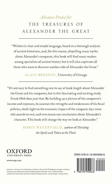 War, the most profitable economic activity in the ancient world, transferred wealth from the vanquished to the victor. Invasions, sieges, massacres, annexations, and mass deportations all redistributed property with dramatic consequences for kings and commoners alike. No conqueror ever captured more people or property in so short a lifetime than Alexander the Great in the late fourth century BC. For all its savagery, the creation of Alexander's empire has generally been hailed as a positive economic event for all concerned. Even those harshly critical of Alexander today tend to praise his plundering of Persia as a means of liberating the moribund resources of the East. To test this popular interpretation, The Treasures of Alexander the Great investigates the kinds and quantities of treasure seized by the Macedonian king, from gold and silver to land and slaves. It reveals what became of the king's wealth and what Alexander's redistribution of these vast resources can tell us about his much-disputed policies and personality. Though Alexander owed his vast fortune to war, battle also distracted him from competently managing his spoils and much was wasted, embezzled, deliberately destroyed, or idled unprofitably. The Treasures of Alexander the Great provides a long-overdue and accessible account of Alexander's wealth and its enormous impact on the ancient world.