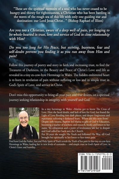 Are you a practising Christian trapped within the darkness of your past trauma? If so, find the Treasures of Darkness and the secrets God promises (Isaiah 53:3) as you follow Marina (Carrier)'s journey of Owning the pain of her trauma, into deeper faith and increasing trust and Life in Christ. Despite Baptism as a child and gifts of God in education, Marina found herself exhausted, in hopelessness and despair in her late 40s. In the midst of her depression, God's voice called Marina back into conscious relationship with Him and lead her ultimately to mission in Scotland, where she served for 17 years. Over time, the trials of Marina's past traumas persisted until God brought her spiritually to her knees, and provided an opportunity to 'Listen to the Pain' in a tiny hermitage in Wales. Here, Marina's early traumatic suffering was finally brought to the open, allowing Light to flood the dark places in her soul. Turning to God the Holy Spirit, brought forgiveness and repentance which softened the hardened depths of Marina's heart and soul, and opened closed regions of her mind. She became courageous in the arms of God, trusting in His provision in Christ. Join Marina on her journey by getting your copy now and find your own treasures in darkness by facing the pain and finding the light of God's love. This leads on to Book 2 of the Series, 'He heals the Broken Hearted'; "Your Will be Done: Beyond Powerlessness and Fear - Revelation of Life in Love"