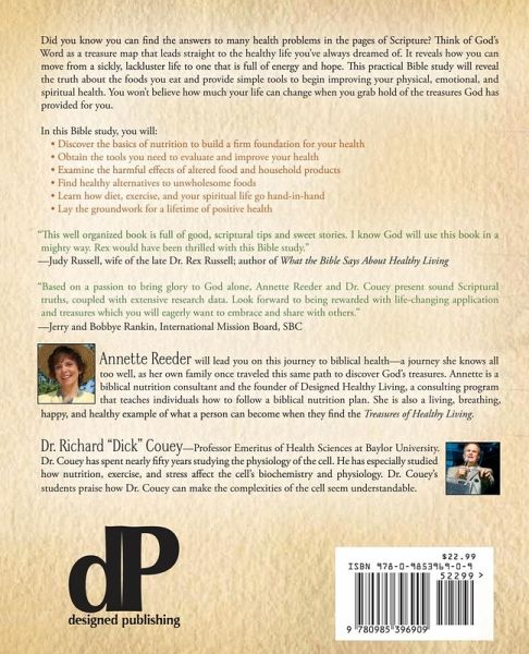 Unearthing God's Timeless Plan for Your Health and Vitality The Treasures of Healthy Living Bible Study is a transformative 12-week journey that uses Scripture as your treasure map to a life of abundant vitality and optimal health! Authored by Annette Reeder, The Biblical Nutritionist, and Dr. Richard Couey, this study proves that God's Word is the ultimate authority on wellness. This is not a fad or diet trend; it's returning to the foundational truths of His design for your health, physically and spiritually. Annette's personal story is the heart of this study. She was sick, overweight, and depressed until she turned to the Bible for answers. What she discovered was a connection between our faith and our physical bodies. When applying the principles found there, she experienced 60 pounds of weight loss and relief from her family's chronic health challenges. God's plan for us isn't about deprivation-it's about living a rich life to the fullest! Unearthing Your Treasure: A 12-Week Journey of Biblical Nutrition Part 1: Feasting in God's Design (Weeks 1-6) Discover how to eat for His glory as a form of worship and devotion. ¿ Biblical Principles of Health: Learn the Three Principles for making wise food choices that honor your body as a temple. ¿ Whole Bible Foods: You'll explore God's original pantry-from whole grains, herbs, spices, and legumes to fresh produce and clean meats. ¿ Healthy Eating Plan: A new perspective reframes food from a source of fear to a source of satisfaction, blessing, and fellowship. Explore natural sweeteners like honey and learn why simple sugars are "anti-nutrients". ¿ Beverages for Life: Dive into the spiritual and physical benefits of pure water and God's design for beverages like raw milk and fresh juice. Part 2: Guarding Your Treasure (Weeks 7-12) Build spiritual and emotional habits that protect the gift of health God has entrusted to you. ¿ Spiritual Discipline: Learn the significance of fasting and self-control to break addictions and find freedom from sinful desires. This is a crucial step for total healthy living. ¿ Battling Toxins & Stress: We'll identify and fight the "pirates" of our modern world-stress, unforgiveness, and toxins lurking in our environment and food. Learn how your emotional state impacts your immune system. ¿ Worship Through Movement: Exercise isn't just about looking good; it's a form of worship! Learn how a cardiovascular routine and strength training honors God with your body. Begin your Christian health journey today. The answers for biblical nutrition and wellness are found in God's Word. This 12-week Bible study is your invitation to uncover God's plan for your health and be transformed from the inside out!