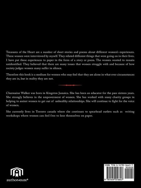 Treasures of the Heart are a number of short stories and poems about different women's experiences.These women were interviewed by myself. They related different situations that were going on in their lives. I have put these experiences to paper in the form of a story or poem. The women wanted to remain unidentified.They believed that there are many issues that women struggle with, and because of how society judges women,many suffer in silence. Therefore, this book is a medium for women who may feel that they are alone in what ever circumstances they are in, but in reality they are not. These are their stories. Enter into their world.