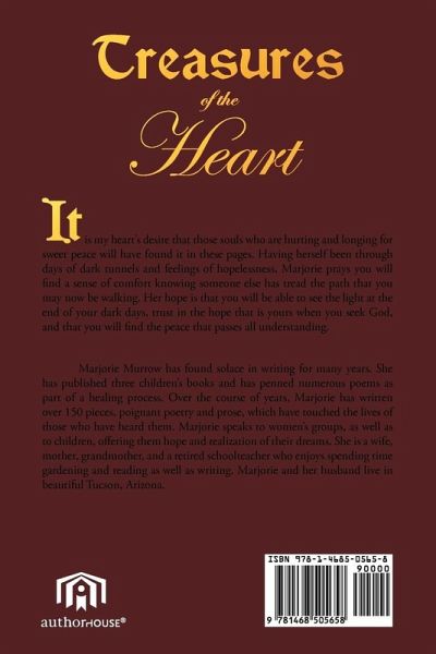 It is my heart's desire that those souls who are hurting and longing for sweet peace will have found it in these pages. Having herself been through days of dark tunnels and feelings of hopelessness, Marjorie prays you will find a sense of comfort knowing someone else has tread the path that you may now be walking. Her hope is that you will be able to see the light at the end of your dark days, trust in the hope that is yours when you seek God, and that you will find the peace that passes all understanding.