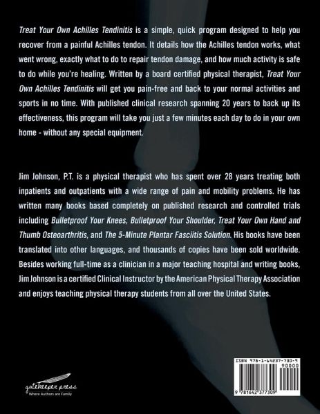 Treat Your Own Achilles Tendinitis is a simple, quick program designed to help you recover from a painful Achilles tendon. It details how the Achilles tendon works, what went wrong, exactly what to do to repair tendon damage, and how much activity is safe to do while you're healing. Written by a board certified physical therapist, Treat Your Own Achilles Tendonitis will get you pain-free and back to your normal activities and sports in no time. With published clinical research spanning 20 years to back up its effectiveness, this program will take you just a few minutes each day to do in your own home - without any special equipment.