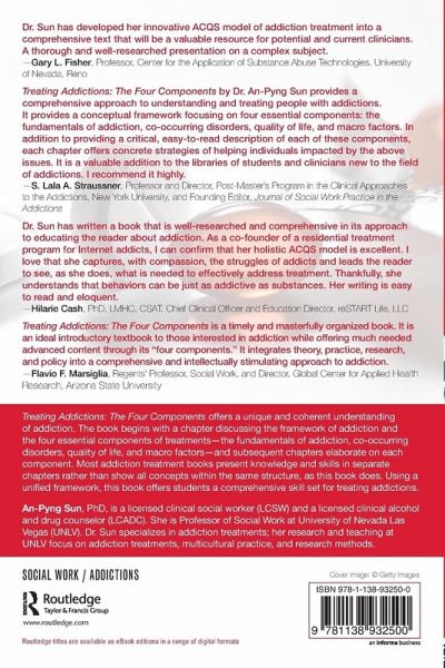 Treating Addictions: The Four Components offers a unique and coherent understanding of addiction. The book begins with a chapter discussing the framework of addiction and the four essential components of treatments-the fundamentals of addiction, co-occurring disorders, quality of life, and macro factors-and subsequent chapters elaborate on each component. Most currently available addiction treatment books present knowledge and skills in separate chapters and fail to integrate all chapters within a single framework that can weave all concepts into a meaningful tapestry. Using a unified framework, this book offers students a comprehensive skill set for treating addictions.