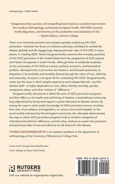 There is an inherently powerful and complex paradox underlying HIV/AIDS prevention-between the focus on collective advocacy mobilized to combat global HIV/AIDS and the staggeringly disproportionate rates of HIV/AIDS in many places. In Treating AIDS, Thurka Sangaramoorthy examines the everyday practices of HIV/AIDS prevention in the United States from the perspective of AIDS experts and Haitian immigrants in South Florida. Although there is worldwide emphasis on the universality of HIV/AIDS as a social, political, economic, and biomedical problem, developments in HIV/AIDS prevention are rooted in and focused exclusively on disparities in HIV/AIDS morbidity and mortality framed through the rubric of race, ethnicity, and nationality. Everyone is at equal risk for contracting HIV/AIDS, Sangaramoorthy notes, but the ways in which people experience and manage that risk-and the disease itself-is highly dependent on race, ethnic identity, sexuality, gender, immigration status, and other notions of “difference.” Sangaramoorthy documents in detail the work of AIDS prevention programs and their effect on the health and well-being of Haitians, a transnational community long plagued by the stigma of being stereotyped in public discourse as disease carriers. By tracing the ways in which public knowledge of AIDS prevention science circulates from sites of surveillance and regulation, to various clinics and hospitals, to the social worlds embraced by this immigrant community, she ultimately demonstrates the ways in which AIDS prevention programs help to reinforce categories of individual and collective difference, and how they continue to sustain the persistent and pernicious idea of race and ethnicity as risk factors for the disease.