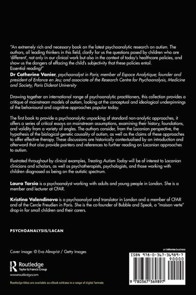 "An extremely rich and necessary book on the latest psychoanalytic research on autism. The authors, all leading thinkers in this field, clarify for us the questions posed by children who are 'different', not only in our clinical work but also in the context of today's healthcare policies, and show us the dangers of effacing the child's subjectivity that these policies entail. Essential reading!"
