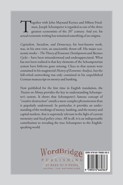 Together with John Maynard Keynes and Milton Friedman, Joseph Schumpeter is regarded as one of the three greatest economists of the 20th century. And yet, his actual economic writing has remained something of an enigma. Capitalism, Socialism, and Democracy, his best-known work, was also an unscientific throw-off in his view. His major economic works - The Theory of Economic Development and Business Cycles - have been misunderstood and underappreciated. What has not been realized is that key elements of the Schumpeterian system have hitherto gone missing. Clues to that system were contained in his magisterial History of Economic Analysis, but the full-orbed outworking was contained in his unpublished German manuscript on money and banking. Now published in English translation, the Treatise on Money provides the key to understanding Schumpeter's system. It shows that Schumpeter's famous emphasis on 'creative destruction' is a more complex phenomenon than is popularly understood. In particular, it provides an understanding of the workings of money, banking, and the money and capital markets, that are supremely relevant in the light of current monetary and fiscal policy crises. This present volume is therefore an indispensable contribution to revealing the true Schumpeter to the English-speaking world.