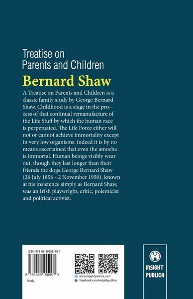 A Treatise on Parents and Children is a classic family study by George Bernard Shaw. Childhood is a stage in the process of that continual remanufacture of the Life Stuff by which the human race is perpetuated. The Life Force either will not or cannot achieve immortality except in very low organisms: indeed it is by no means ascertained that even the amoeba is immortal. Human beings visibly wear out, though they last longer than their friends the dogs.George Bernard Shaw (26 July 1856 - 2 November 1950), known at his insistence simply as Bernard Shaw, was an Irish playwright, critic, polemicist and political activist.…mehr