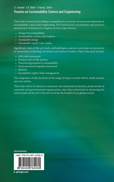 This book is aimed at providing a comprehensive overview of recent developments in sustainability science and engineering. The book focuses on principles and practices and presents 18 interwoven chapters on four major themes: design for sustainability; sustainability metrics and analysis; sustainable energy; and sustainable supply/value. Significant, state-of-the-art work, methodologies, practices and plans are presented by researchers, technology developers and industry leaders. Topics discussed include: life cycle assessment; product end-of-life options; practical approaches to sustainability; environmental footprint assessment; biofuels; and sustainable supply chain management.