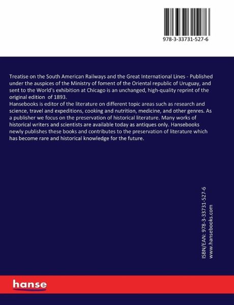 Treatise on the South American Railways and the Great International Lines - Published under the auspices of the Ministry of foment of the Oriental republic of Uruguay, and sent to the World's exhibition at Chicago is an unchanged, high-quality reprint of the original edition of 1893.