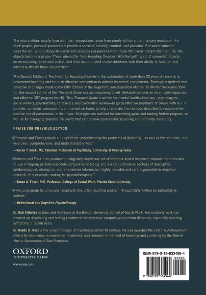 The relationship people have with their possessions ranges from purely utilitarian to intensely emotional. For most people, their personal possessions provide them with a sense of security, comfort, and pleasure. However, if someone loses the ability to distinguish useful or important possessions from those that make life overly complicated, the objects can become a prison. For people who suffer from Hoarding Disorder (HD), the process of getting rid of unneeded objects is not easy. For them, possessions never "feel" unneeded and trying to get rid of them is an excruciating emotional ordeal. This Second Edition of Treatment for Hoarding Disorder is the culmination of more than 20 years of research on understanding hoarding and building an effective intervention to address its myriad components. Thoroughly updated and reflective of changes made to the Fifth Edition of the Diagnostic and Statistical Manual for Mental Disorders (DSM-5), this second edition of the Therapist Guide and accompanying client Workbook outlines an empirically supported and effective CBT program for treating hoarding disorder. This Therapist Guide is written for mental health clinicians-psychologists, social workers, psychiatrists, counsellors, and psychiatric nurses-to guide effective treatment of people with hoarding disorder. It provides numerous assessment and intervention forms to help clients use the methods described in the intervention. A major goal of the treatment is to recapture the positive role of possessions in the lives of people with hoarding problems, and strategies are outlined for sustaining gains and making further progress, as well as for managing stressful life events that can provoke problematic acquiring and difficulty discarding.
