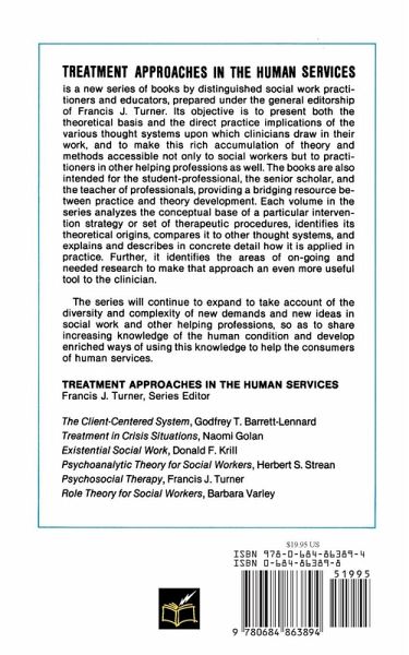 "Treatment Approaches in the Human Services" is a new series of books by distinguished social work practitioners and educators, prepared under the general editorship of Francis J. Turner. Its objective is to present both the theoretical basis and the direct practice implications of the various thought systems upon which clinicians draw in their work, and to make this rich accumulation of theory and methods accessible not only to social workers but to practitioners in other helping professions as well. The books are also intended for the student-professional, the senior scholar, and the teacher of professionals, providing a bridging resource between practice and theory development. Each volume in the series analyzes the conceptual base of a particular intervention strategy or set of therapeutic procedures, identifies its theoretical origins, compares it to other thought systems, and explains and describes in concrete detail how it is applied in practice. Further, it identifies the areas of on-going and needed research to make that approach an even more useful tool to the clinician.