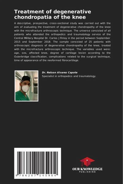 A descriptive, prospective, cross-sectional study was carried out with the aim of evaluating the treatment of degenerative chondropathy of the knee with the microfracture arthroscopic technique. The universe consisted of all patients who attended the orthopedics and traumatology service of the Central Military Hospital Dr. Carlos J Finlay in the period between September 2015 and September 2018. The sample consisted of 25 patients with arthroscopic diagnosis of degenerative chondropathy of the knee, treated with the microfracture arthroscopic technique. The variables used were: age, sex, affected knee, degree of cartilage lesion according to the Outerbridge classification, complications related to the surgical technique, time of appearance of the neoformed fibrocartilage.