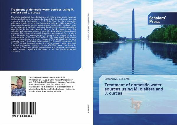 The study evaluated the effectiveness of natural coagulants (Moringa oleifera and Jatropha curcas seeds) in purifying domestic water sources in Achara Uturu, Isuikwuato L. G. A, Abia State. In Uturu, domestic waters are usually sourced from boreholes, wells and Ihiiku stream. The three domestic water source samples were subjected to analysis using various standards methods. Values of the physico-chemical parameters were higher in the rainy season than in the dry season, and this indicated high seasonal influence except for total alkalinity, chloride and sulphate. The cations observed followed the sequence of Ca++ Mg++ K+. Similarly, the concentration of heavy metals appeared in the following order of ZnMnCuFePbCd (Zn was significantly above the acceptable limits in the rainy season). The microbial counts were generally high, 6.0 - 250 cfu/ml (borehole), 8.0 - 6300 cfu/ml (well), 20 - 14000 cfu/ml (stream) during the rainy season, while the total potential pathogenic bacteria counts (TPPBC) were the least in occurrence. Treatment with Moringa oleifera and Jatropha curcas seed powder showed significant decrease in all the physico-chemical properties.