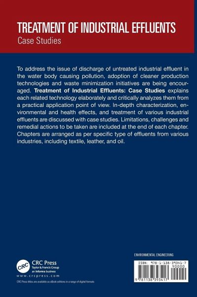 Book explains various industrial effluent technologies from practical application point of view. Characterization, environmental and health effect and treatment of various industrial effluents are discussed with case studies. Limitations, challenges and remedial actions to be taken are included at the end of each chapter.