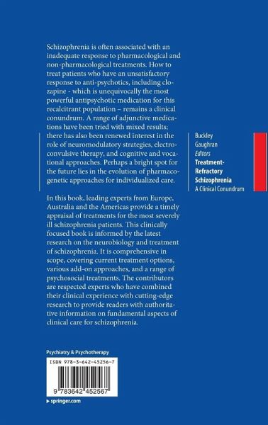 "This interesting book reviews treatment strategies and management options for those suffering from treatment-refractory schizophrenia (TRS). ... The target audience includes psychiatrists and other mental health professionals. Any clinicians who treat severely ill patients with psychiatric disorders would benefit from reading this book. ... This is an exceptional book covering a current critical issue for psychiatry and the patients suffering from unremitting psychosis. I highly recommend it." (Michael Joel Schrift, Doody's Book Reviews, July, 2014)