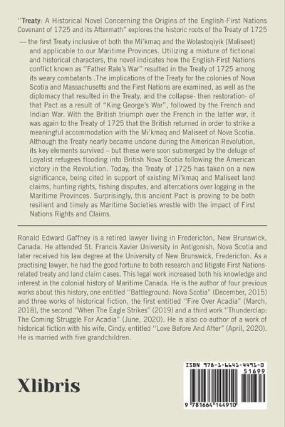 ''Treaty: A Historical Novel Concerning the Origins of the English-First Nations Covenant of 1725 and its Aftermath'' explores the historic roots of the Treaty of 1725 - the first Treaty inclusive of both the Mi'kmaq and the Wolastoqiyik (Maliseet) and applicable to our Maritime Provinces. Utilizing a mixture of fictional and historical characters, the novel indicates how the English-First Nations conflict known as ''Father Rale's War'' resulted in the Treaty of 1725 among its weary combatants .The implications of the Treaty for the colonies of Nova Scotia and Massachusetts and the First Nations are examined, as well as the diplomacy that resulted in the Treaty, and the collapse- then restoration- of that Pact as a result of "King George's War", followed by the French and Indian War. With the British triumph over the French in the latter war, it was again to the Treaty of 1725 that the British returned in order to strike a meaningful accommodation with the Mi'kmaq and Maliseet of Nova Scotia. Although the Treaty nearly became undone during the American Revolution, its key elements survived - but these were soon submerged by the deluge of Loyalist refugees flooding into British Nova Scotia following the American victory in the Revolution. Today, the Treaty of 1725 has taken on a new significance, being cited in support of existing Mi'kmaq and Maliseet land claims, hunting rights, fishing disputes, and altercations over logging in the Maritime Provinces. Surprisingly, this ancient Pact is proving to be both resilient and timely as Maritime Societies wrestle with the impact of First Nations Rights and Claims.