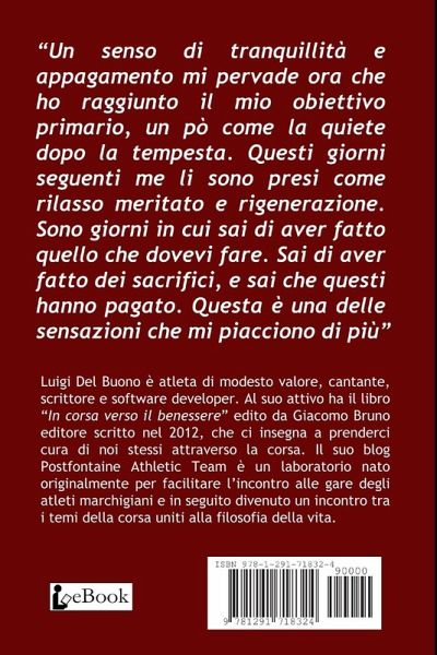 La corsa è la cosa più vicina alla natura umana, ci riappacifica con il nostro corpo e con la nostra anima. Siamo fatti per correre e per saltare, non per stare seduti in una sedia. Attraverso la corsa, ho imparato cosa vuol dire avere un obiettivo, credere in qualcosa, insistere, lavorare, impegnarsi, sudare e poi godere pienamente della propria conquista. Che sia correre o altro è una lezione di vita, che ha profondamente cambiato me stesso migliorandomi. Questa è la storia di un desiderio raggiunto dopo anni di lavoro. Correre i 1500 metri in pista dove mio padre era stato grande, anche se con tempi neanche paragonabili è per me un raggiungimento di un traguardo che mi rende pieno di entusiasmo e felicità e che cos'è la vita se non il semplice essere contenti di quel che si è fatto?!