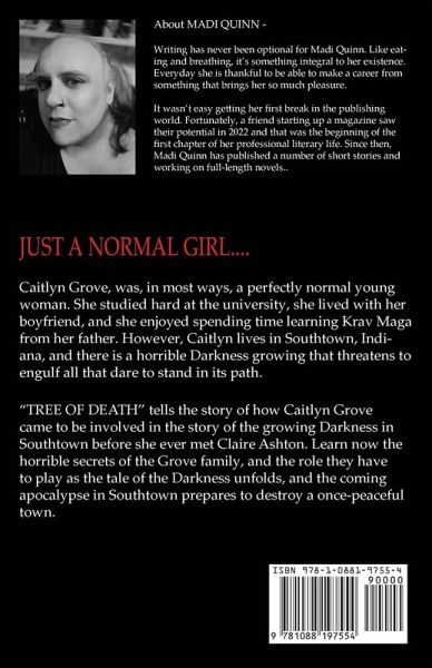 Caitlyn Grove, was, in most ways, a perfectly normal young woman. She studied hard at the university, she lived with her boyfriend, and she enjoyed spending time learning Krav Maga from her father. However, Caitlyn lives in Southtown, Indiana, and there is a horrible Darkness growing that threatens to engulf all that dare to stand in its path. "TREE OF DEATH" tells the story of how Caitlyn Grove came to be involved in the story of the growing Darkness in Southtown before she ever met Claire Ashton. Learn now the horrible secrets of the Grove family, and the role they have to play as the tale of the Darkness unfolds, and the coming apocalypse in Southtown prepares to destroy a once-peaceful town.