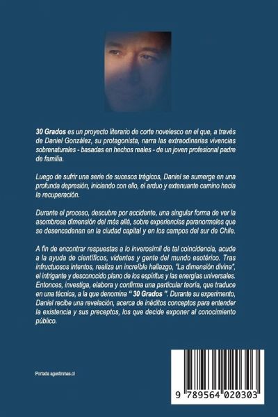 Treinta Grados es un proyecto literario de corte novelesco en el que, a través de Daniel González, su protagonista, narra las extraordinarias vivencias sobrenaturales de un joven profesional padre de familia. Luego de sufrir una serie de sucesos trágicos, Daniel se sumerge en una profunda depresión, iniciando con ello el arduo y extenuante camino hacia una esquiva recuperación. Durante el proceso, descubre, por accidente, una singular forma de ver la asombrosa dimensión del más allá, traducida en experiencias paranormales que se desencadenan en la ciudad capital y en los campos del sur de Chile. A fin de encontrar respuestas a lo inverosímil de tan impresionante coincidencia, acude a la ayuda de científicos, videntes y especialistas del esoterismo. Tras infructuosos intentos, realiza un increíble hallazgo, el campo espacial de "La dimensión divina", el intrigante y desconocido plano de los espíritus y las energías universales. Entonces, elabora una particular teoría, a la que denomina "Treinta Grados", cuya simple técnica lo transporta a voluntad hacia vibrantes y desconcertantes realidades. Durante su experimento, Daniel recibe una revelación acerca de inéditos conceptos que le ayudan a entender el enigma existencial y sus preceptos, los que decide exponer al conocimiento público en esta interesante narrativa. Esta novela es original de Miguel Ángel Camiletti Sáez y está basada en circunstancias reales.