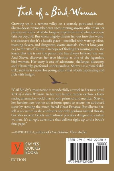 Growing up in a remote valley on a sparsely populated planet, Shevra doesn't remember ever encountering anyone other than her parents and sister. And she longs to explore more of what she is certain lies beyond. But when tragedy thrusts her out into that world, she discovers that it's a hostile place—one filled with warring tribes, roaming slavers, and dangerous, exotic animals. On her long journey to the city of Tantexlo in hopes of finding her missing sister, she learns that she is not the person she has always believed she was. And Shevra discovers her true identity as one of the legendary bird-women. Her story is one of adventure, challenge, discovery, and, ultimately, profound understanding. Shevra's is a remarkable trek, and this is a novel for young adults that is both captivating and rich with insight.