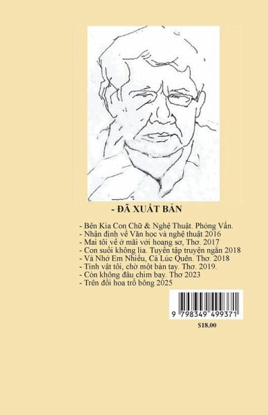 Nh¿ng vì có ý th¿c, con ng¿¿i c¿ng nh¿n ra r¿ng mình v¿n có v¿ trí trong không gian và bên dòng th¿i gian. Th¿ k¿ 17, khoa h¿c gia kiêm tri¿t gia ng¿¿i Pháp René Descartes tuyên b¿, "Je pense, donc je suis" (Tôi suy t¿, t¿c là tôi hi¿n h¿u / I think, therefore I am). Vì th¿, n¿u ¿¿ l¿i l¿i nói, t¿ t¿¿ng, tác ph¿m v¿n ch¿¿ng ngh¿ thüt, s¿ hi¿n di¿n c¿a con ng¿¿i v¿n ¿¿¿c ghi d¿u trong xã h¿i và v¿¿t qua th¿i gian. Khi nhà th¿ V¿ Hoàng Ch¿¿ng vi¿t ¿ Sàigòn trong th¿p niên 1950, "Nh¿t ch¿¿ng hào h¿ng ng¿o thiên thu," ông ¿ã nh¿c l¿i ý t¿¿ng c¿a Lý B¿ch t¿ trên 1200 n¿m tr¿¿c: Khüt Bình t¿ phú huy¿n nh¿t nguy¿t S¿ V¿¿ng ¿ài t¿ không s¿n khâu (T¿ phú c¿a Khüt Nguyên treo v¿i m¿t tr¿i, m¿t tr¿ng ¿ài t¿ c¿a vua n¿¿c S¿ không còn gì gi¿a ¿ám núi gò). Khüt Nguyên trang g¿m truy¿n lâu ¿i¿n ¿ài vua S¿ chìm sâu l¿p gò. Nhà th¿ ¿¿ng Phú Phong ¿ã sáng tác r¿t nhi¿u. Bên c¿nh m¿t t¿p ph¿ng v¿n, nh¿n ¿¿nh v¿ v¿n h¿c và ngh¿ thüt, Bên Kia Con Ch¿ & Ngh¿ Thüt (2016), ông ¿ã có hai t¿p truy¿n ng¿n: Nh¿ng ¿óa M¿u ¿¿n (2004, tái b¿n 2015), Con Süi Không Lìa (2018). Riêng v¿ th¿, ông ¿ã có 6 thi t¿p ¿¿¿c xüt b¿n, theo th¿ t¿ th¿i gian là: --Nghiêng Cây Bóng X¿ (1970) --N¿i Bün Tháng B¿y (2014) --Mai Tôi V¿ ¿ Mãi V¿i Hoang S¿ (2017) --Và Nh¿ Em V¿, C¿ Lúc Quên (2018) --T¿nh V¿t Tôi, Ch¿ M¿t Bàn Tay (2019) --Ch¿m Ngõ Vô Th¿¿ng (2021)