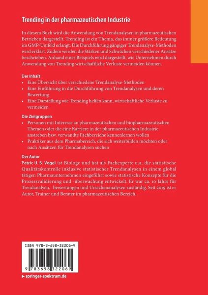 In diesem Buch wird die Anwendung von Trendanalysen in pharmazeutischen Betrieben dargestellt. Trending ist ein Thema, das immer größere Bedeutung im GMP-Umfeld erlangt. Die Durchführung gängiger Trendanalyse-Methoden wird erklärt. Zudem werden die Stärken und Schwächen verschiedener Ansätze beschrieben. Anhand eines Beispiels wird dargestellt, wie Unternehmen durch Anwendung von Trending wirtschaftliche Verluste vermeiden können.