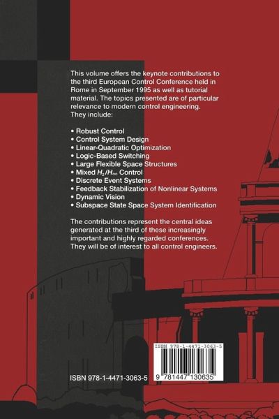 This book contains the text of the plenary lectures and the mini-courses of the European Control Conference (ECC 95) held in Rome, Italy, September 5-September 8, 1995. In particular, the book includes nine essays in which a selected number of prominent authorities present their views on some of the most recent developments in the theory and practice of control systems design and three self-contained sets of lecture notes. Some of the essays are focused on the topic of robust control. The article by J. Ackermann describes how to robustly control the rotational motions of a vehicle, to the purpose of simplifying the driver's task. The contribution by H. K wakernaak presents a detailed discussion of the requirements that performance and robustness impose on control systems design and of the symmetric roles of sensitivity and complementary sensitivity functions. The article by P. Boulet, B. A. Francis, P. C . Hughes and T. Hong describes an experimental testbed facility, called Daisy, whose dynamics emulate those of a real large flexible space structure and whose purpose is to test advanced identification and control design methods. The article of K. Glover discusses recent advances in uncertain system modeling, analysis and design, with ref erence to a flight control case study that has been test flown. The other essays describe advances in fundamental problems of control theory. The article by V. A. Yakubovich is a survey of certain new infinite horizon linear-quadratic optimization problems. The contribution by A. S.