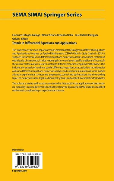 This work collects the most important results presented at the Congress on Differential Equations and Applications/Congress on Applied Mathematics (CEDYA/CMA) in Cádiz (Spain) in 2015. It supports further research in differential equations, numerical analysis, mechanics, control and optimization. In particular, it helps readers gain an overview of specific problems of interest in the current mathematical research related to different branches of applied mathematics. This includes the analysis of nonlinear partial differential equations, exact solutions techniques for ordinary differential equations, numerical analysis and numerical simulation of some models arising in experimental sciences and engineering, control and optimization, and also trending topics on numerical linear Algebra, dynamical systems, and applied mathematics for Industry. This volume is mainly addressed to any researcher interested in the applications of mathematics, especially in any subject mentioned above. It may be also useful to PhD students in applied mathematics, engineering or experimental sciences.