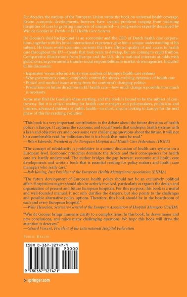 Some may find De Gooijer's ideas startling, and the book is bound to be the subject of controversy. But it is critical reading for health care managers and policymakers, politicians and insurers, advanced students of public health - in short, anyone looking to Europe for the next phase of this far-reaching evolution.