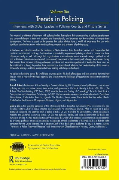 Bruce F. Baker is Professor of African Security at Coventry University, UK. His research and publications cover African policing, security and justice reform, local justice, and governance. His book, Security in Post-Conflict Africa: The Role of Non-State Policing (CRC Press, 2009) won the American Society of Criminology's Prize for Best Book in Comparative and International Criminology in 2010. He has undertaken research and consultancies in Zimbabwe, Mozambique, South Africa, Rwanda, Uganda, The Gambia, Sierra Leone, Cape Verde, the Seychelles, Liberia, South Sudan, the Comoros, Madagascar, Ethiopia, Nigeria, and Afghanistan. Dilip K. Das is the founding president of the International Police Executive Symposium (IPES, www.ipes.info) and founding Editor-in-Chief of Police Practice and Research: An International Journal. After 14 years as a police executive, including time spent as a chief of police in India, Dr. Das moved to the United States, where he earned a Master's and doctorate in criminal justice. Dr. Das has authored, edited, and co-edited more than 30 books and numerous articles. He has traveled extensively throughout the world while engaged in comparative police research, as a visiting professor at various universities, to organize annual conferences of the IPES, and as a human rights consultant for the United Nations. He is Editor-in-Chief of two book series published by Taylor & Francis Group: "Advances in Police Theory and Practice" and "Interviews with Global Leaders in Policing, Courts, and Prisons".