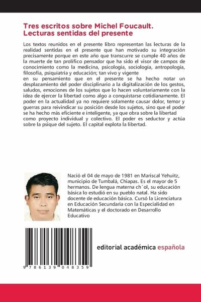 Los textos reunidos en el presente libro representan las lecturas de la realidad sentidas en el presente que han motivado su integración precisamente porque en este año que transcurre se cumple 40 años de la muerte de tan prolífico pensador que ha sido el visor de campos de conocimiento como la medicina, psicología, sociología, antropología, filosofía, psiquiatría y educación; tan vivo y vigenteen su pensamiento que en el presente se ha hecho notar un desplazamiento del poder disciplinario a la digitalización de los gestos, saludos, emociones de los sujetos que lo hacen voluntariamente con la idea de ejercer la libertad como algo a conquistarse cotidianamente. El poder en la actualidad ya no requiere solamente causar dolor, temor y guerras para reivindicar su posición desde los sujetos, sino que el poder se ha hecho más eficiente e inteligente, ya que obra sobre la libertadcomo proyecto individual y colectivo. El poder es seductor y actúa sobre la psique del sujeto. El capital explota la libertad.
