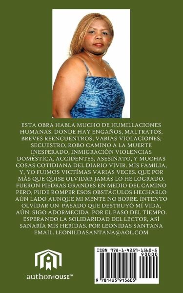 SIGNOSIS: ESTA OBRA HABLA MUCHO DE LA HUMILLACIONES HUMANAS DONDE HAY ENGAÑOS MALTRATROS BREVE RENUMERACION HUMILLACIONES MALTRATOS VARIAS VIOLACIONES SECUESTROS ROBOS CAMINO A LA MUERTE INNESPERADOS, INMIGRACION VIOLENCIAS DOMESTICA ACCIDENTES SUICIDIO ACESINATOS Y DE MUCHAS COSAS COTIDIANA DEL DIARIOS VIVIR COSAS QUE POR MAS QUE QUIERA JAMAS CAMBIARIA EL MUNDO Y POR MAS QUE DESEE OLBIVIDAR JAMA LO HE LOGRADO, FUERON PIEDRA MUY GRANDE EN MEDIO DEL CAMINOS PERO PUDE ROMPER ESOS OBTACULOS Y HECHARLA AUN LADOS AUNQUE MI MENTE NO BORRE INTENTOS OLBIDAR ESE PASADO QUE DESTRULLO MI VIDA Y AUN SIGO ADORMECIDA, POR EL PASO Y EL TIEMPO.