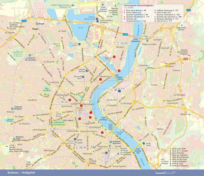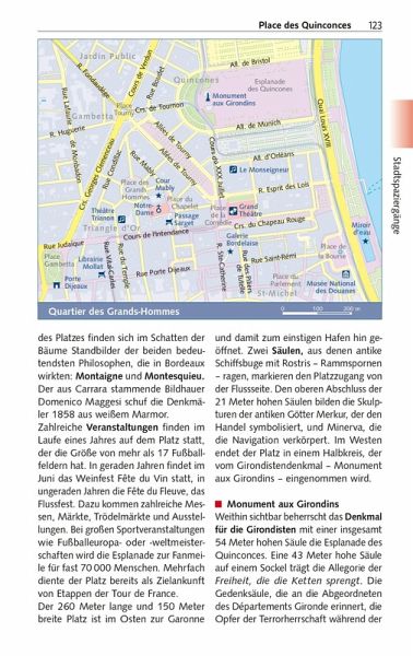 Kunst- und Kulturbegeisterte, Feinschmecker und Freunde des bunten Lebens - alle schwärmen von Bordeaux, dem »Paris des Südens«. Der imposante Place de la Bourse, die gotische Kathedrale Saint-André, das Grand Théâtre und eine Fülle weiterer barocker und klassizistischer Gebäude machen das historische Zentrum zum Gesamtkunstwerk. Seit 2007 trägt es den UNESCO-Welterbetitel. Erstklassige Museen wie das Musée des Beaux-Arts oder das Musée d'Art Contemporain hüten das reiche Kulturerbe. Vergangenes strahlt in neuem Glanz, darunter die Bassins des Lumières, im Zweiten Weltkrieg düstere deutsche U-Boot-Basis und heute weltweit das größte Zentrum für digitale Kunst. Und Neues wurde geschaffen, wie die Cité du Vin, die mit spektakulärer Architektur auf zehn Etagen den Wein feiert. Stolz und Markenzeichen des Bordelais.