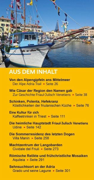 Der Trescher-Reiseführer FRIAUL-JULISCH VENETIEN begleitet kompetent durch den facettenreichen Landstrich, stellt die schönsten Orte und Sehenswürdigkeiten vor und bietet viele Anregungen für Wanderungen und Radtouren. Eine umfangreiche Einführung macht mit Geschichte, Natur, Kultur und Küche bekannt. Ausflüge ins nahe Slowenien, Empfehlungen für Hotels und Restaurants, ein kleiner Sprachführer und zahlreiche praktische Reisetipps komplettieren das Buch zum idealen Begleiter für Genießer, Kunstfreunde und Aktivurlauber unterwegs im Nordosten Italiens.