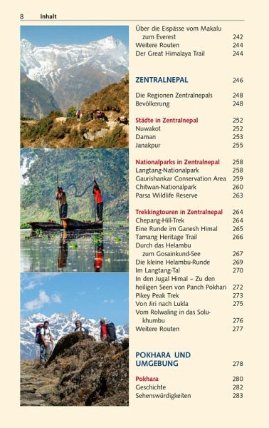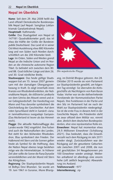Der Trescher Reiseführer NEPAL stellt alle Sehenswürdigkeiten, Geschichte und Gegenwart, Kunst und Kultur der verschiedenen Völker und Religionen des Hochgebirgslands umfassend vor. Die 44 beschriebenen Trekkingrouten variieren von einfachen Tageswanderungen über Klassiker wie die Annapurna-Umrundung bis zu schwierigen Touren im Hochgebirge. Präzise Übersichtskarten und Stadtpläne bieten gute Orientierung. Aktuelle reisepraktische Informationen von Anreise bis Zoll sowie beste Empfehlungen zu Unterkunft und Gastronomie helfen schon bei der Vorbereitung dieser abenteuerlichen Reise.