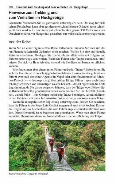 Der Trescher-Autor Ray Hartung ist als Reiseleiter seit drei Jahrzehnten in Nepal unterwegs, tausende Kilometer hat er dort seitdem zu Fuß zurückgelegt und kennt auch noch die entlegensten Winkel. Alle kulturellen und natürlichen Sehenswürdigkeiten werden von ihm ausführlich vorgestellt. Für jede Region hält er detailliert beschriebene Trekkingtouren parat. Ein umfangreiches Info-Kapitel zu Trekking und Bergsteigen gibt darüber hinaus wichtige Tipps für die Planung und Durchführung mit Angabe der Schwierigkeitsgrade, Dauer, Gebühren, Ausrüstung, Guides und vielem mehr.