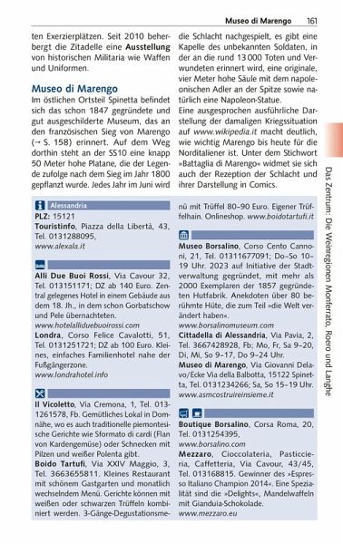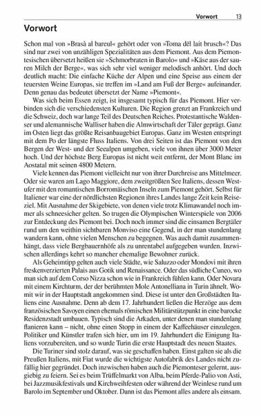 Das Piemont ist berühmt für seine große kulinarische Tradition. Rund um Alba wachsen die kostbaren weißen Trüffel. In den Weinbaugebieten Langhe und Monferrato werden die weltbekannten Tropfen Barolo und Barbaresco gekeltert. Schlösser, Klöster und Kathedralen erinnern daran, dass die Region einst Sitz der Herzöge von Savoyen war. Mit allen Sehens- und Erlebenswürdigkeiten dieses noch relativ wenig besuchten Teils Italiens macht Reisebuchautorin Sabine Herre eingehend bekannt: seien es malerische Weindörfer oder schmucke Städtchen wie Saluzzo, Mondovi oder Cuneo, denen Palazzi aus Gotik und Renaissance zur Zierde gereichen. Piemonts Hauptstadt Turin wartet als erste Kapitale des im 19. Jahrhundert geeinten Italiens mit prächtigen Barockbauten und im quirligen Römischen Viertel mit vorzüglichen Restaurants und Weinbars auf.
