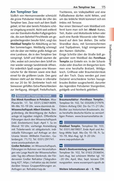 Der Trescher-Reiseführer POTSDAM beschreibt alle Schönheiten der Havelmetropole. Viele Hintergrundinformationen zu Geschichte, Kultur und Architektur, der Blick auf die aktuellen Entwicklungen und auch mancher Insidertipp lassen einen die Stadt noch näher erleben. Zahlreiche Tipps und Adressen für Museen, Kulturveranstaltungen und Freizeitmöglichkeiten, ausgewählte Empfehlungen zu Hotels und Restaurants und ein herausnehmbarer Faltplan mit Register und Nahverkehrslinien komplettieren den Titel und machen ihn zum wertvollen Begleiter unterwegs in Potsdam.