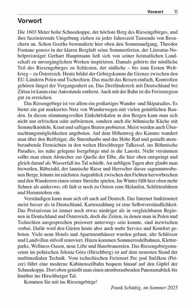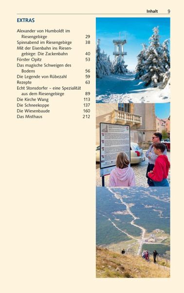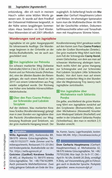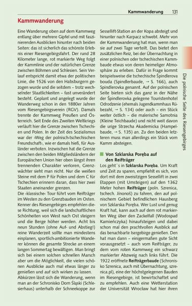 Auch kulturell hat das Riesengebirge viel zu bieten: Das Hirschberger Tal beeindruckt durch seine Schlösser und Parkanlagen. Allein Jelenia Góra (Hirschberg) mit quirliger Kulturszene, schöner Altstadt und dem Riesengebirgsmuseum ist eine Reise wert, schreibt angetan Trescher-Autor Frank Schüttig. Dazu kommt Kurbaden im "böhmischen Bad Gastein" Janské Lázne (Johannisbad) oder in Swieradów Zdrój (Bad Flinsberg) im Isergebirge. Und Wandern, natürlich, durch die in Nationalparks geschützte Bergwelt, zum Beispiel zur Elbquelle, oder den klassischen Kammweg entlang mit atemberaubenden Fernsichten.