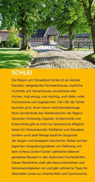 Wandern durch Wiesen, Moore und Dünen. Radeln, Baden, Paddeln, Surfen und Segeln. In den Schlei-Dörfern die liebevoll eingerichteten lokalen Museen besuchen und in den Gaststätten leckere regionale Gerichte genießen. Der Trescher-Reiseführer SCHLEI hat dafür jede Menge Tipps im Gepäck. Er stellt alle Naturschönheiten und Sehenswürdigkeiten ausführlich vor, gibt Empfehlungen zu Unterkünften und Gastronomie und bietet außerdem viele spannende Vorschläge für Kulturevents und Aktivitäten. Ein idealer Begleiter für einen ebenso geruhsamen wie erlebnisreichen Urlaub rund um den längsten Ostseearm Deutschlands.