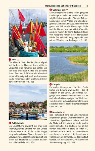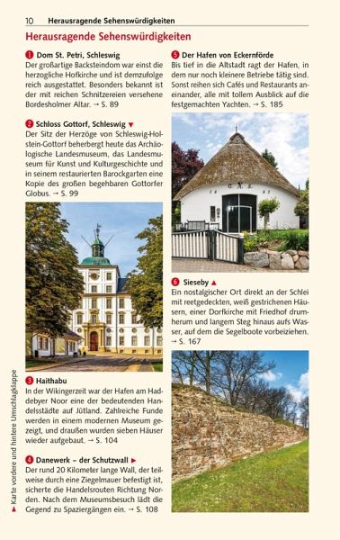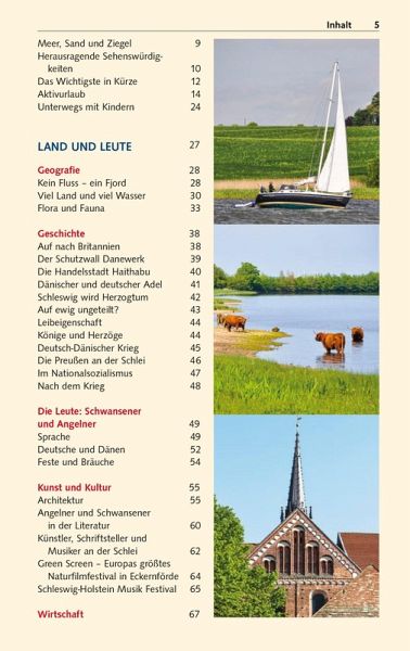 Malerische Orte im Puppenstubenformat, stattliche Gutshöfe und Häfen voller Fischer- und Segelboote schmücken die Schlei zwischen Maasholm am Übergang zur offenen See und der alten Wikingerstadt Schleswig tief im Binnenland. Dort zeigt das Landesmuseum Schloss Gottorf, historischer Sitz der Herzöge von Schleswig-Holstein-Gottorf, spektakuläre Funde der Region aus 80.000 Jahren Menschheitsgeschichte. Auf das 8. bis 11. Jahrhundert datiert die Wikingersiedlung Haithabu vor den Toren von Schleswig. Sie zählt ebenso zum UNESCO-Welterbe wie nahebei die mittelalterliche dänische Grenzbefestigung Danewerk.