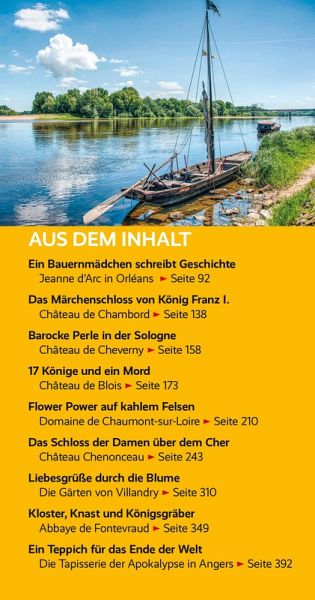 An den Ufern der Loire und ihrer Nebenflüsse liegen im Herzen der Grande Nation viele bedeutende Sehenswürdigkeiten. Majestätisch: Schloss Chambord, Inbegriff der französischen Renaissancearchitektur. Märchenhaft: das Wasserschloss Chenonceau, auch "Schloss der Damen" genannt. Klassisch schön: Schloss Cheverny, in seiner gezeichneten Version auch aus dem Comic "Tim und Struppi" bekannt. Ein jedes von kunstvollen Gärten und Parks umgeben, bilden sie zusammen mit Amboise und Blois, Beauregard und Chaumont, Sully-sur-Loire, Villandry und vielen weiteren Schlössern das UNESCO-Welterbe "Kulturlandschaft Loiretal."
