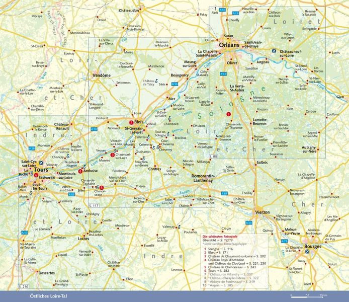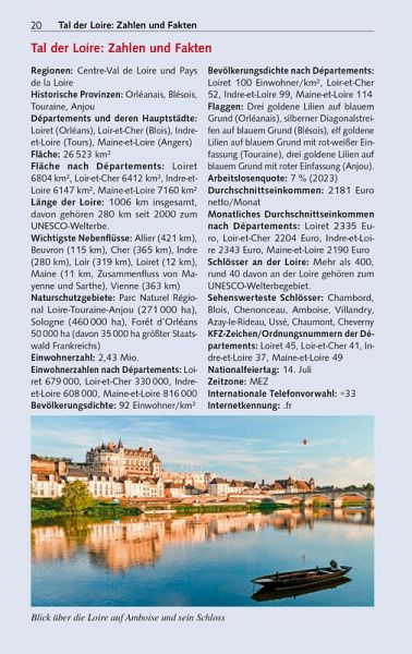 Als einer der letzten unregulierten Flüsse Frankreichs durchströmt die Loire auf ihrem schönsten Abschnitt die Regionen Touraine und Sologne. Wälder, Teich- und Heidelandschaften laden nicht nur Angler und Wanderer zum beschaulichen Urlaub und Naturgenuss ein. Auch den urbanen Zentren lohnt es, einen Besuch abzustatten. Orléans, wo sich die mächtige gotische Kathedrale Sainte-Croix erhebt, Tours mit romantischer Altstadt und quirliger Studentenszene oder Angers, Hauptstadt des Anjou, über deren Dächern das Château d'Angers mit imposanten Befestigungsmauern thront.