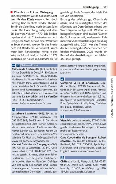Der Trescher-Reiseführer SCHLÖSSER DER LOIRE beschreibt detailliert alle Sehenswürdigkeiten im Loiretal zwischen Sully-sur-Loire und Chalonnes-sur-Loire. Einführende Kapitel zu Geografie, Geschichte, Architektur, Kunst und Kultur werden durch vertiefende Essays ergänzt. Wer sich an den Delikatessen der Region erfreuen möchte, findet neben ausführlichen Texten zu Küche und Weinbau einen kulinarischen Sprachführer sowie eine Fülle an Empfehlungen für Gourmetrestaurants, Bistros, Cafés und die typischen Guinguettes - Gartenlokale mit Musik, Tanz und traditionellen Gerichten. Viele praktische Reisetipps, Vorschläge für Unterkunft und Freizeitaktivitäten, dazu übersichtliche Karten und Stadtpläne runden diesen idealen Begleiter durch den schönsten Teil des Loiretals ab.