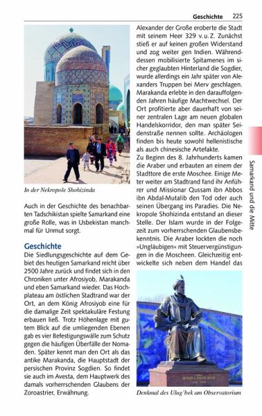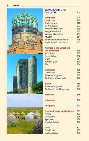 Moscheen und Minarette, Medresen und Mausoleen - in faszinierenden Variationen von Aquamarin über Himmelsblau bis Türkis leuchten die Kuppeln des usbekischen Vierklangs. Der Trescher-Reiseführer USBEKISTAN führt kundig zu den legendären Orten der Seidenstraße.