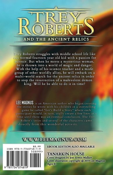 For centuries, ancient relics protected by other worldly creatures were all that stood between peace and world destruction. That peace we all know, is now threatened by a cursed sorcerer's quest to resurrect a malevolent demon king. Trey Roberts, a soccer loving middle schooler deals will all the "normal kid" challenges of early teenage life. However, he also deals with the emotional trauma of the mysterious disappearance of his father. When he meets a mysterious Egyptian woman, he is thrust unwillingly into parallel worlds inhabited by creatures that want to help him and others that are destined to destroy him. ¿¿With the help of his science teacher and a misfit group of other worldly allies, he will embark on a multi-world search for the ancient relics to face the greatest challenge of his life and learn a significant lesson about his family's past. Will he be able to find the courage to do what he fears most?